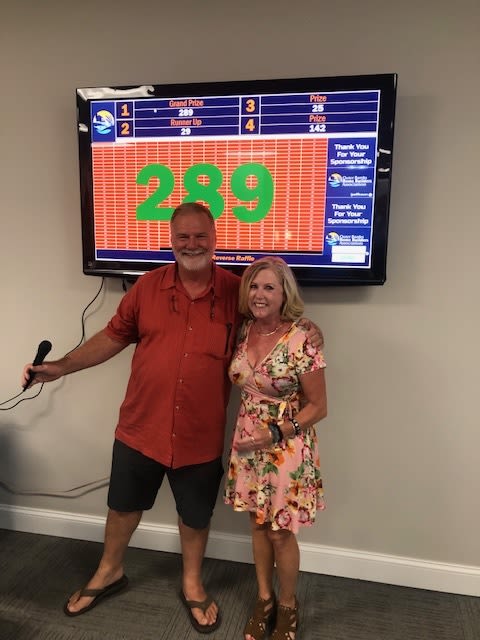 (l-r)Runner-up Rep. Keith Kidwell & wife Viki admiring their picture donated from Daniels Homeport. The grand prize winner was Catherine Vanuliet surronded by her family! On the far left is Ross Sullivan, one of the OBHBA Scholarship recipients.